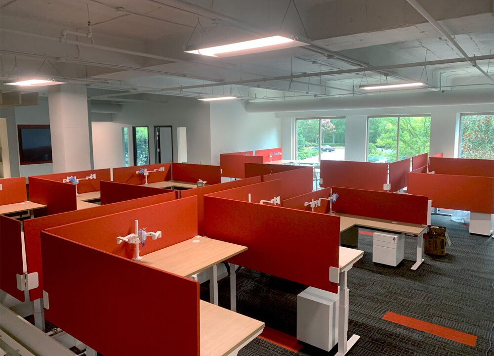 Parrish Construction wanted to give its employees the sit-to-stand desk option, and the Envision Office Solutions team said Clear Design was their go-to option for its top quality and affordable Boost line.
