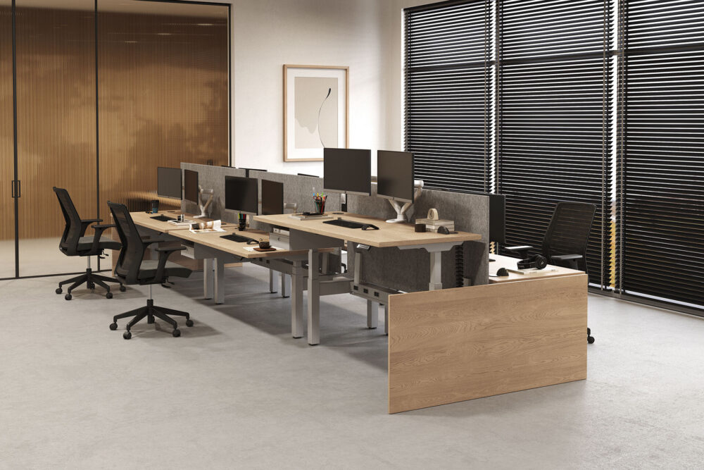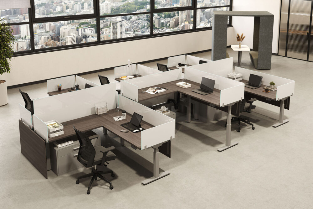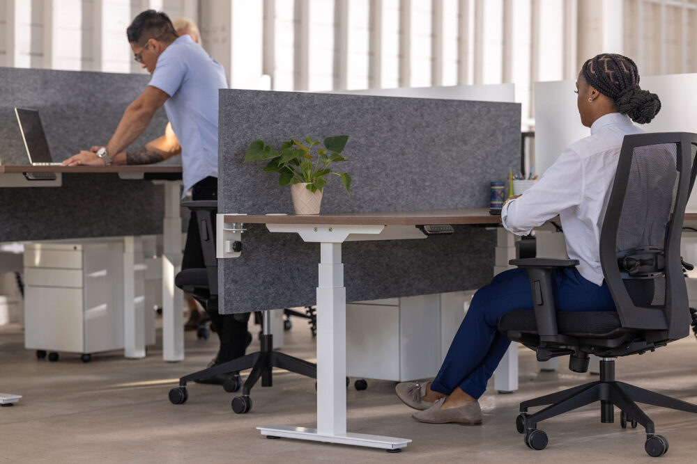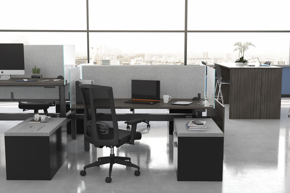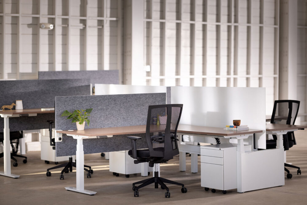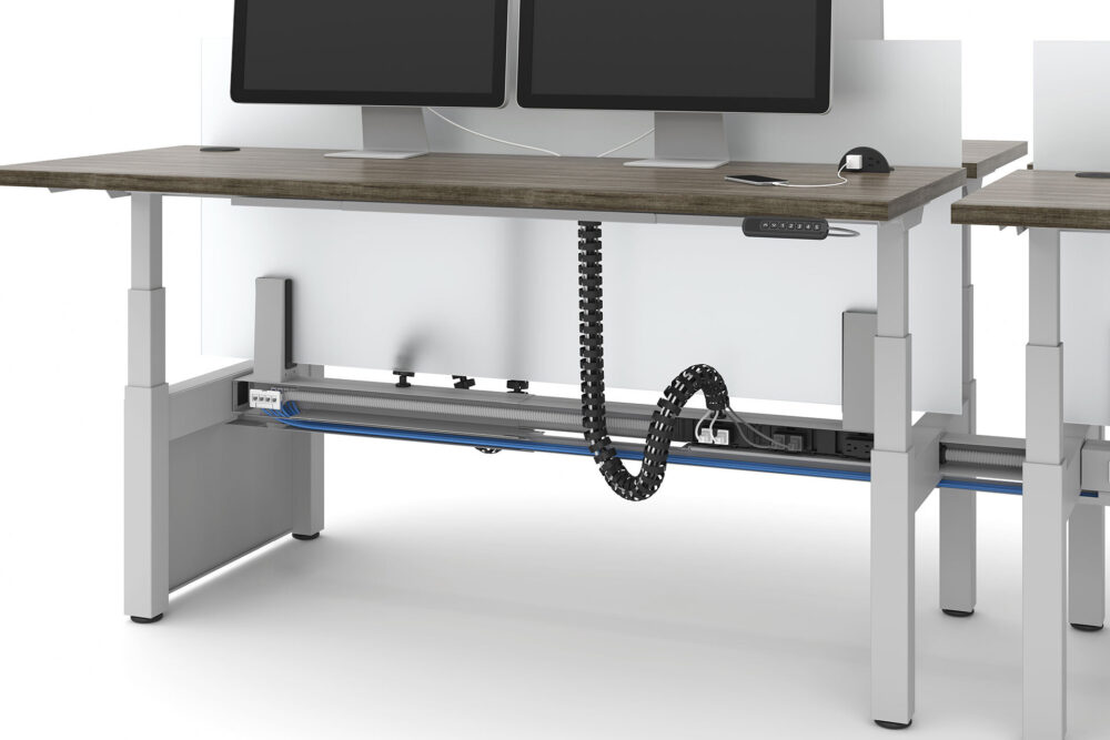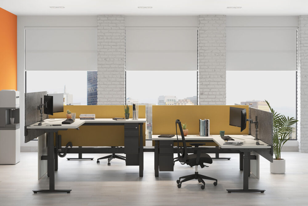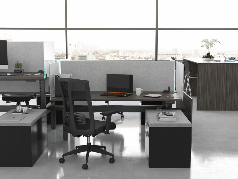 Boost Pro Height-Adjustable Benching is designed for performance and flexibility. Its clean, streamlined look includes integrated power, cable management, and optional dividers for added privacy.