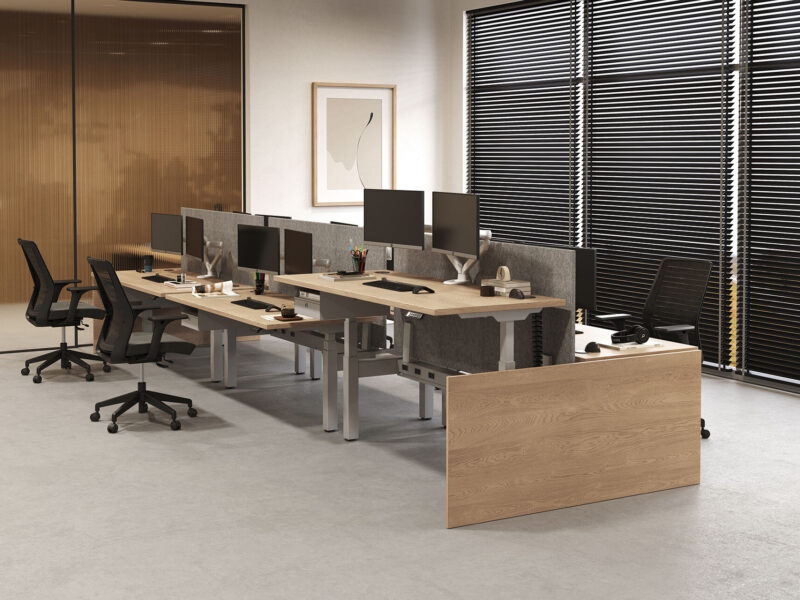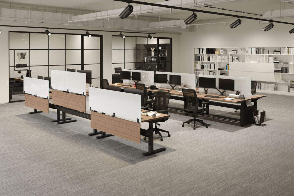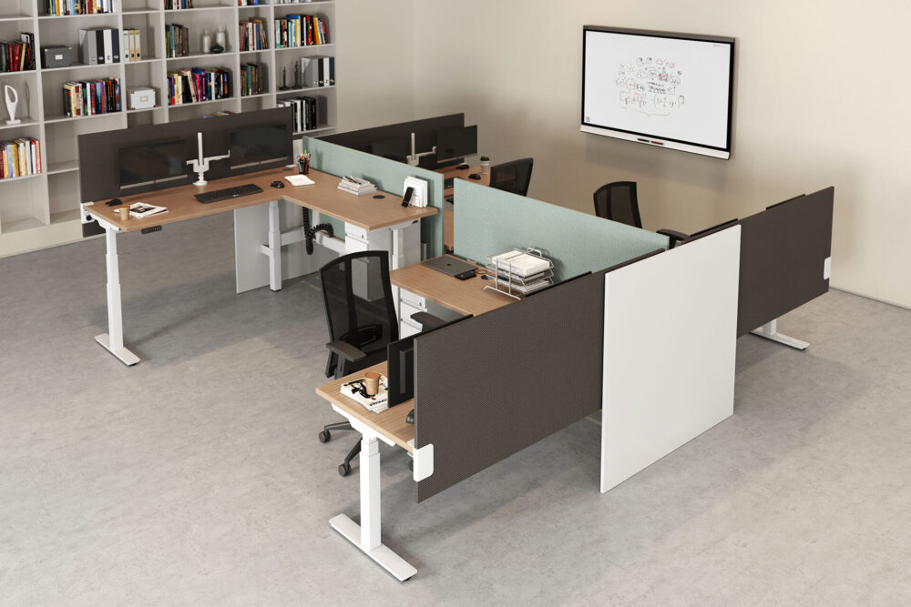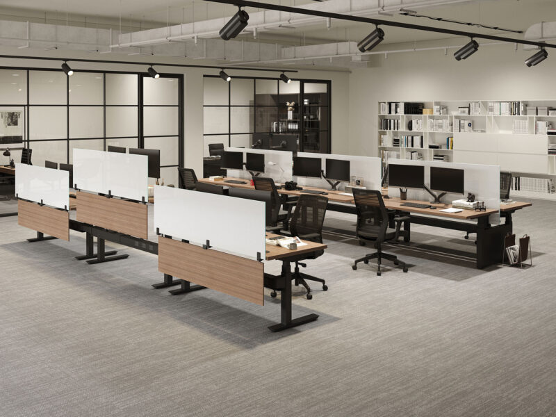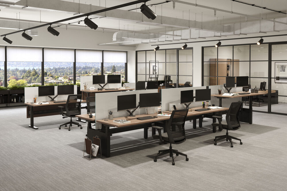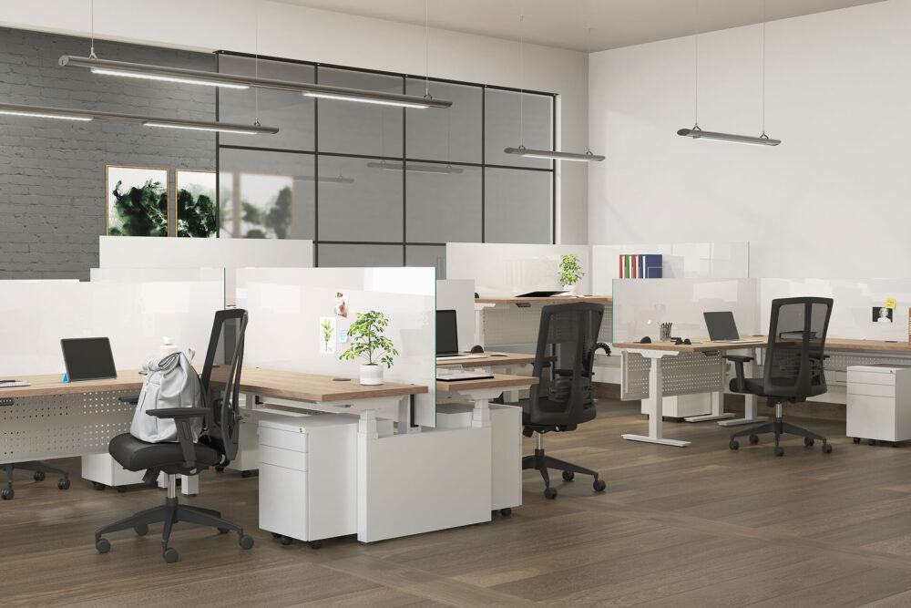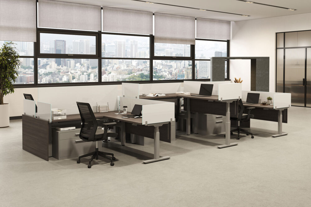 Boost Pro Height-Adjustable Benching is designed for performance and flexibility. Its clean, streamlined look includes integrated power, cable management, and optional dividers for added privacy.