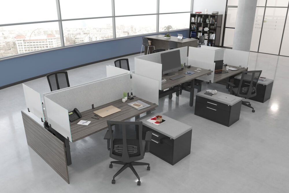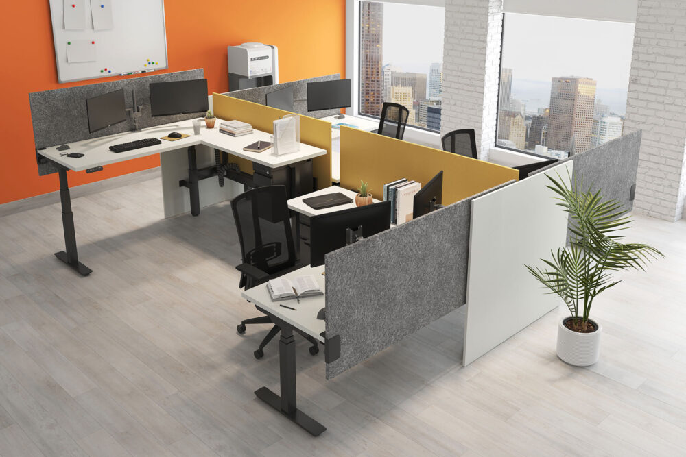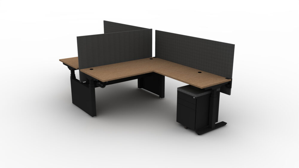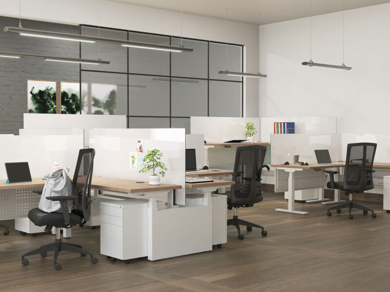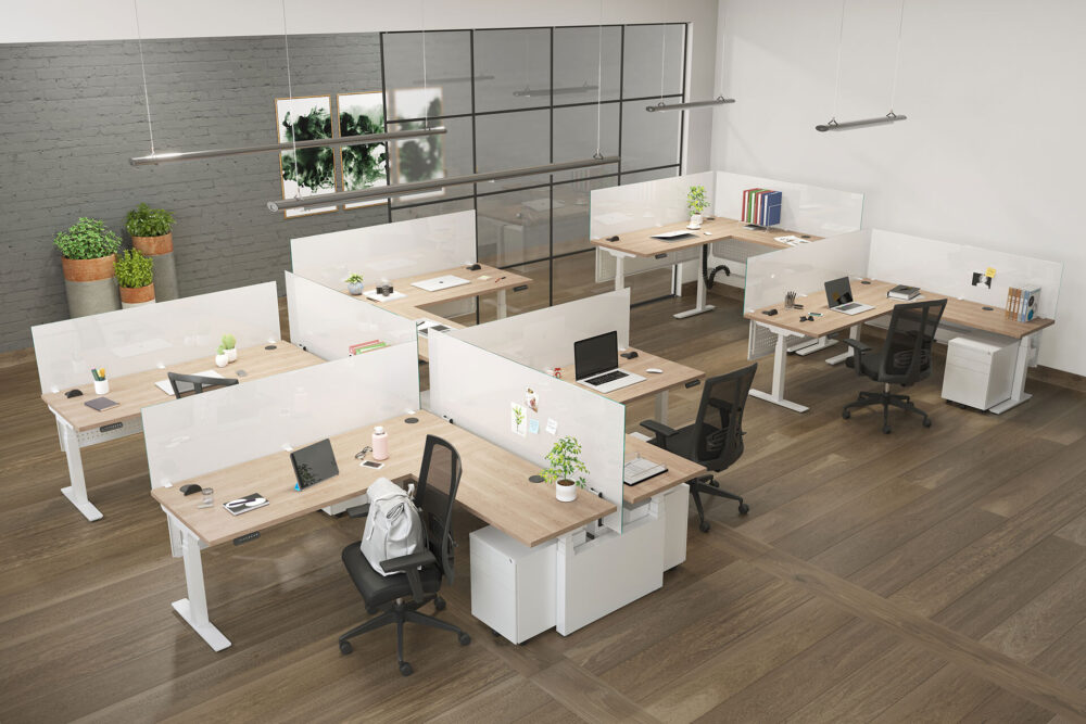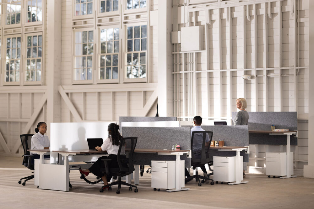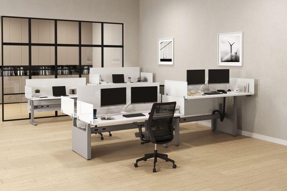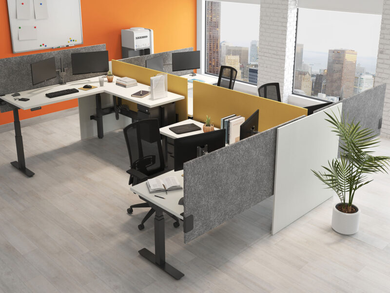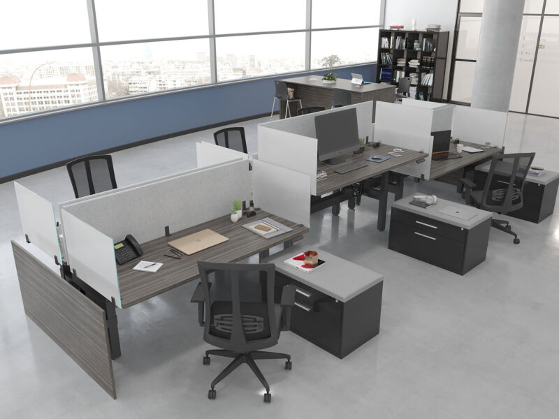 Boost Pro Height-Adjustable Benching is designed for performance and flexibility. Its clean, streamlined look includes integrated power, cable management, and optional dividers for added privacy.