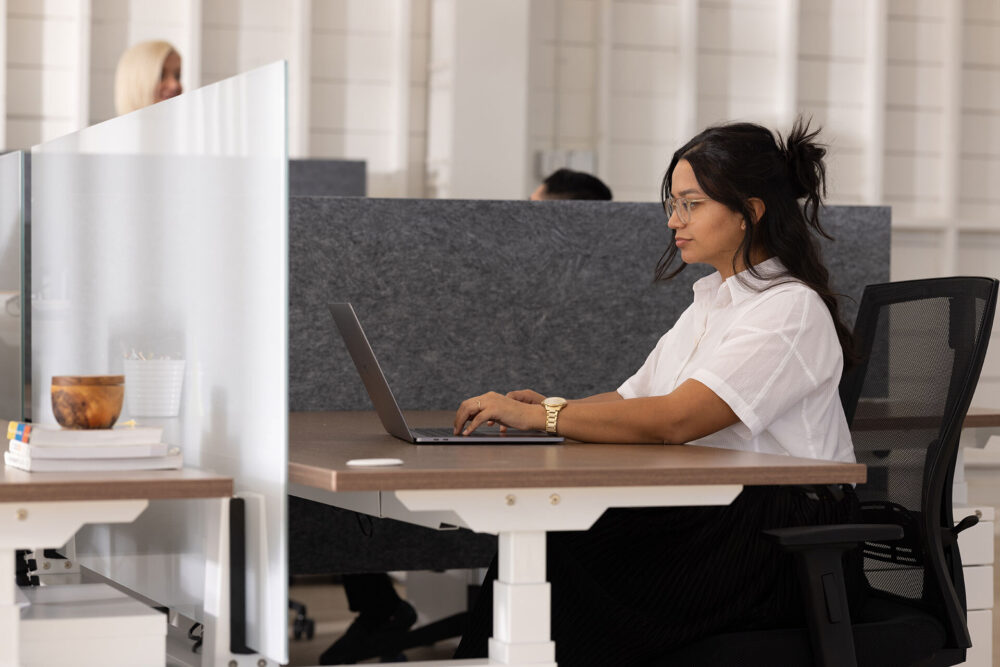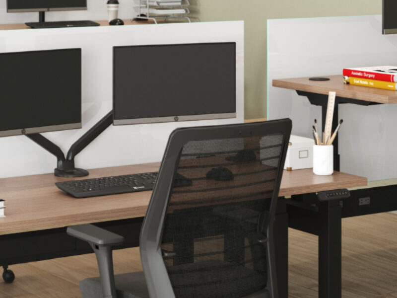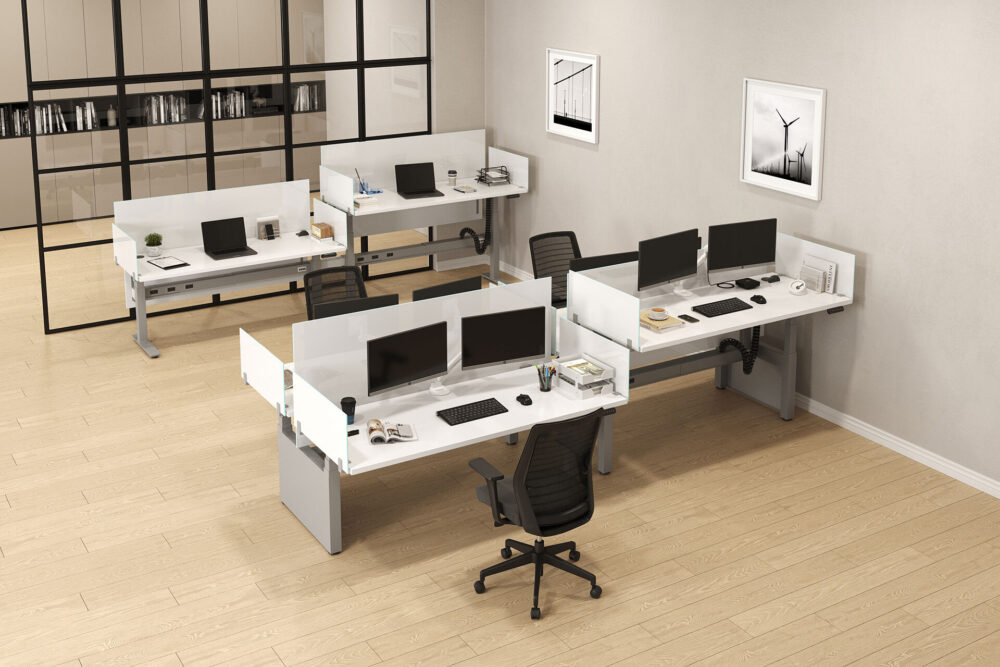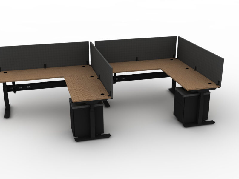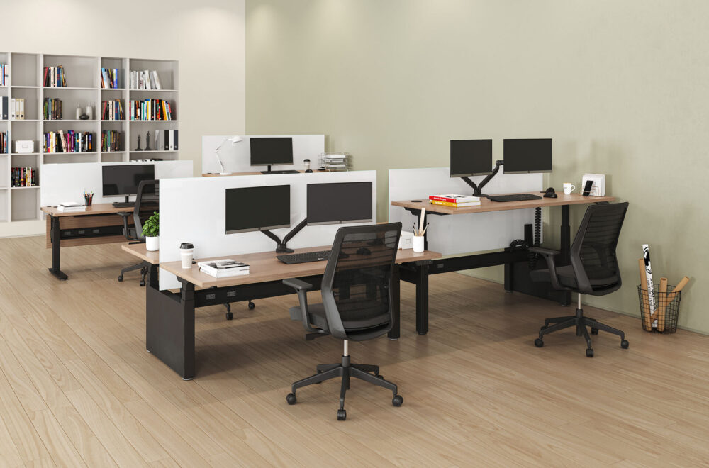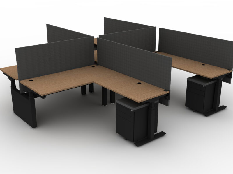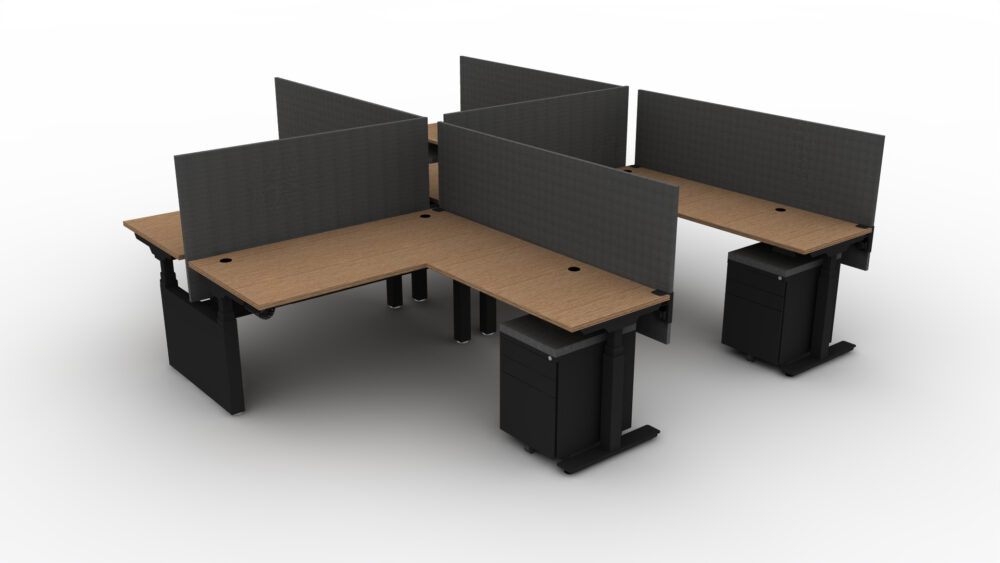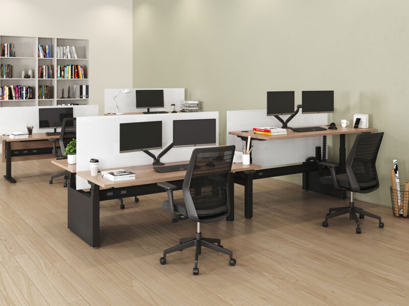 Boost Pro Height-Adjustable Benching is designed for performance and flexibility. Its clean, streamlined look includes integrated power, cable management, and optional dividers for added privacy.