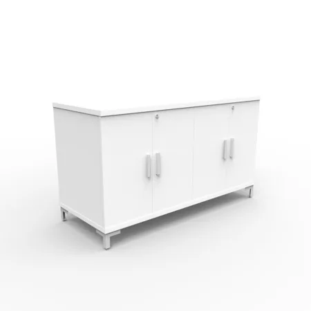 Add versatile storage to conference rooms or private offices with the Buffet Credenza. It features two full-extension drawers above double-hinged doors, offering a mix of accessible and concealed storage. Choose from Sahara Ridge, Electric White, White Oak, or Shadow Elm laminates with Matte Silver, Black, or White pulls to match your space.