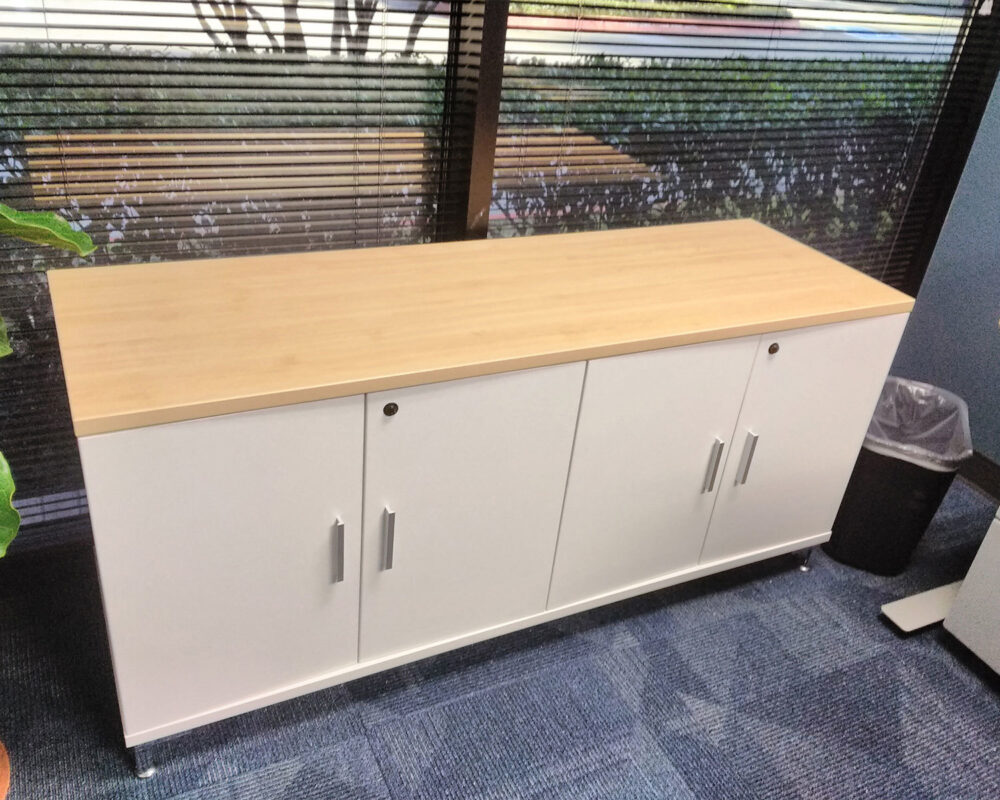 Designed to pair with the Three60 conference line, the Conference Credenza offers secure storage and a clean, modern look. Available in Electric White or Shadow Elm, with mix-and-match top options, it features locking doors to keep binders, equipment, and supplies organized and out of sight.