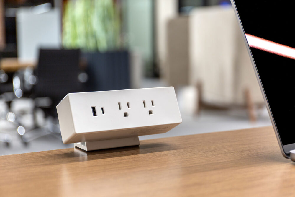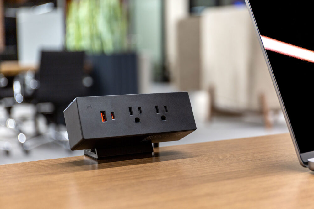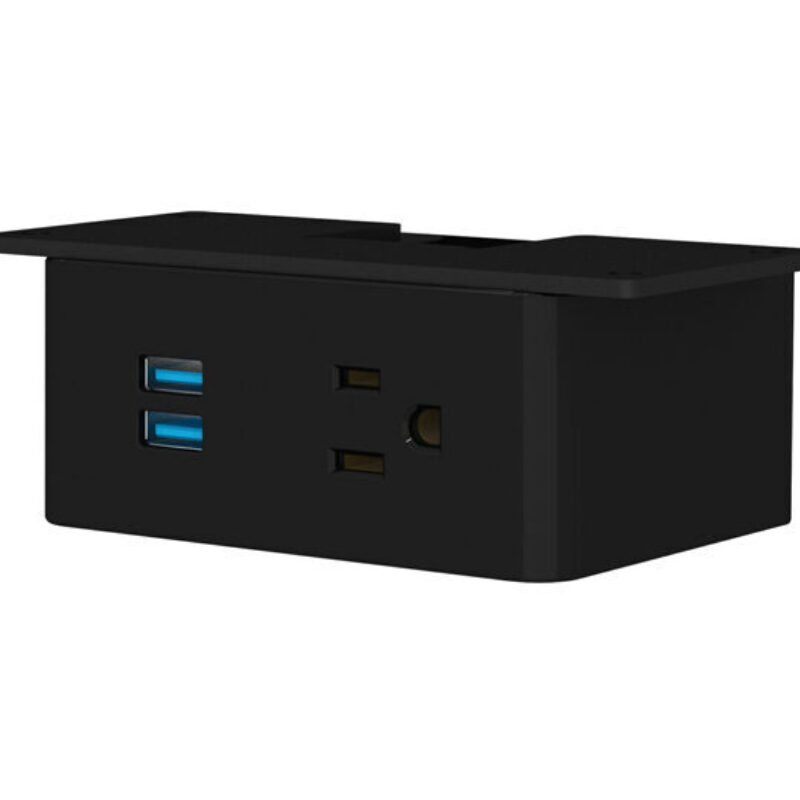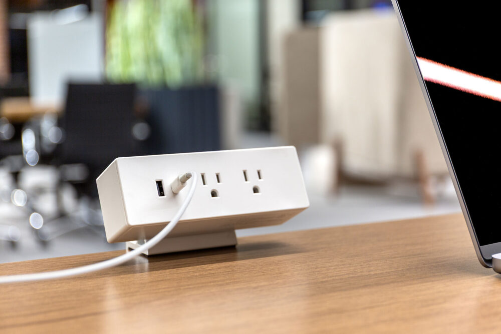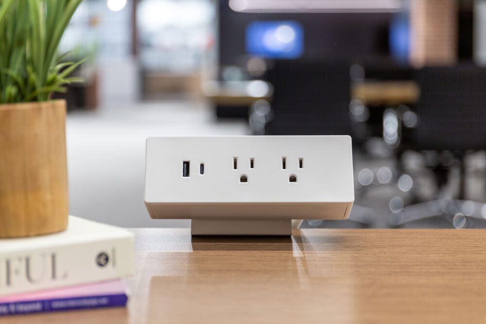 This sleek, surface-mounted power unit keeps charging within easy reach. It includes two power outlets, a USB-C power port, and a USB-A Quick Charge port, making it easy to keep devices powered throughout the day.