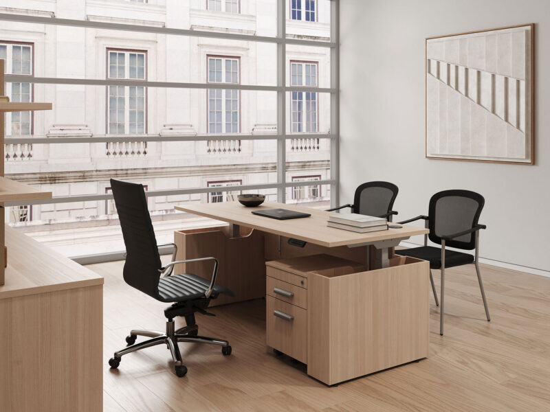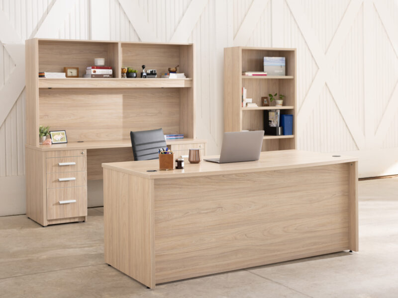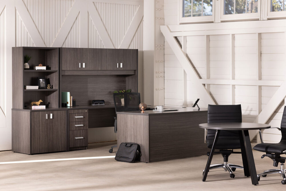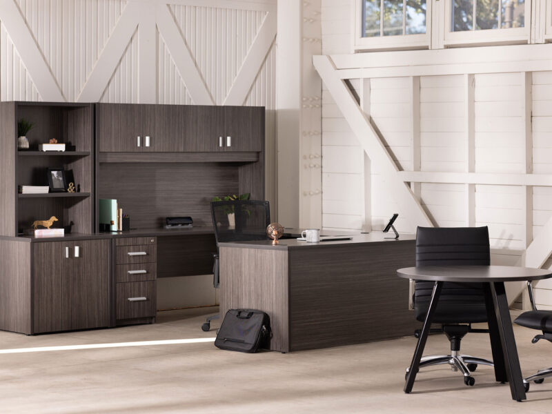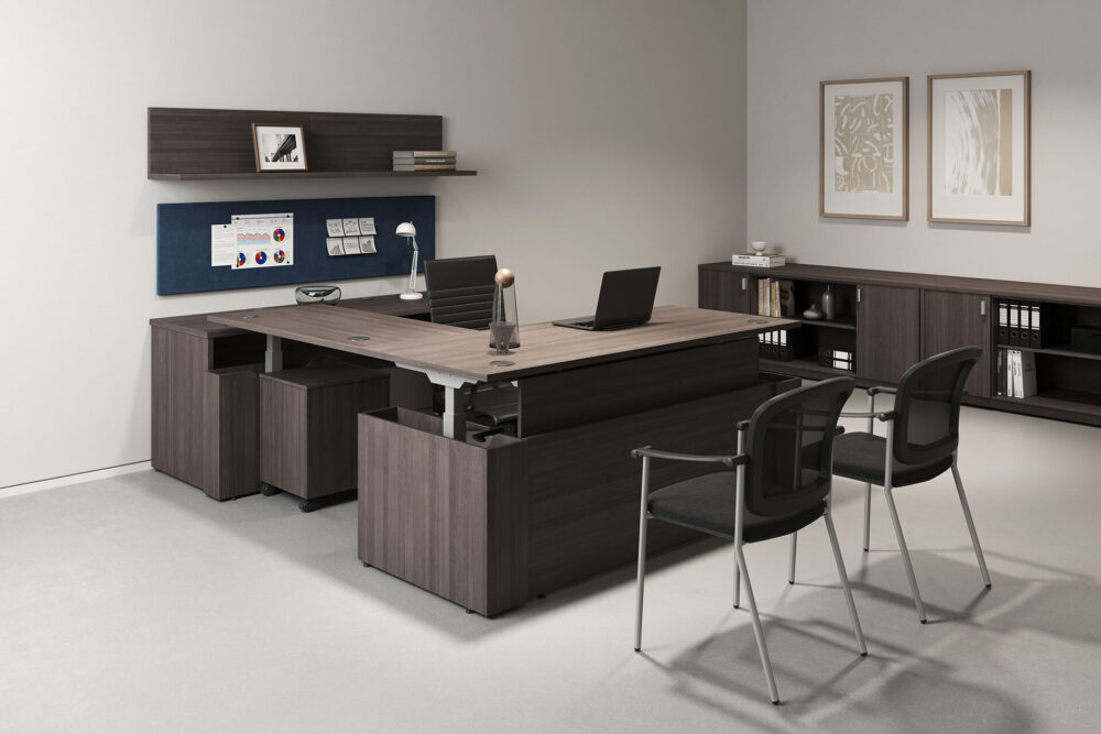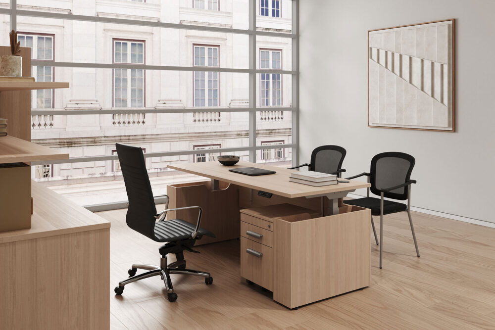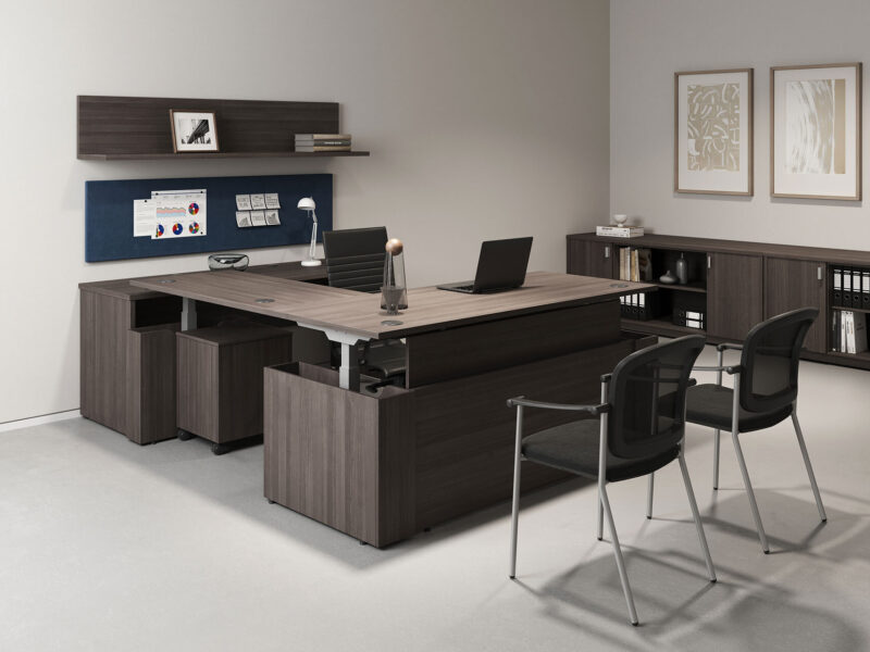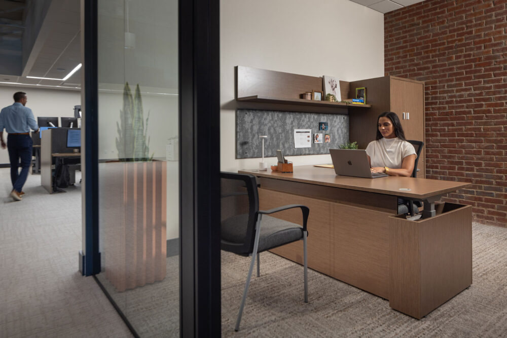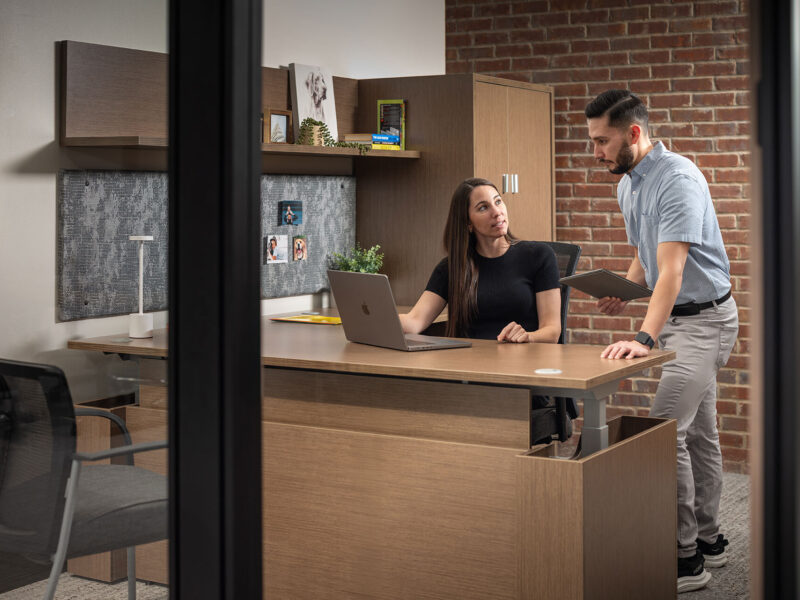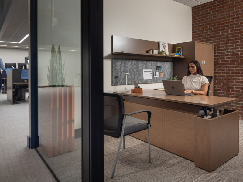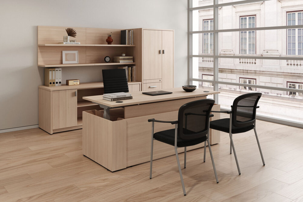 Edge Casegoods Private Office features a full suite of modular desks, shelving, and storage designed for individual workspaces. Perfect for a single executive office or multiple rooms, it adapts seamlessly and pairs with Blade, Boost Pro, Optima, and Three60 systems.